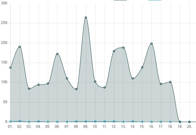 Hier oben in der Übersicht sieht man sofort auf den ersten Blick, wie oft ein Link von meiner Domain pro Tag angeklickt worden ist. Ich habe also täglich zwischen 100 und über 250 Besucher auf allen meinen Links, die ich auf meiner Domain mit dem Tool betreue.